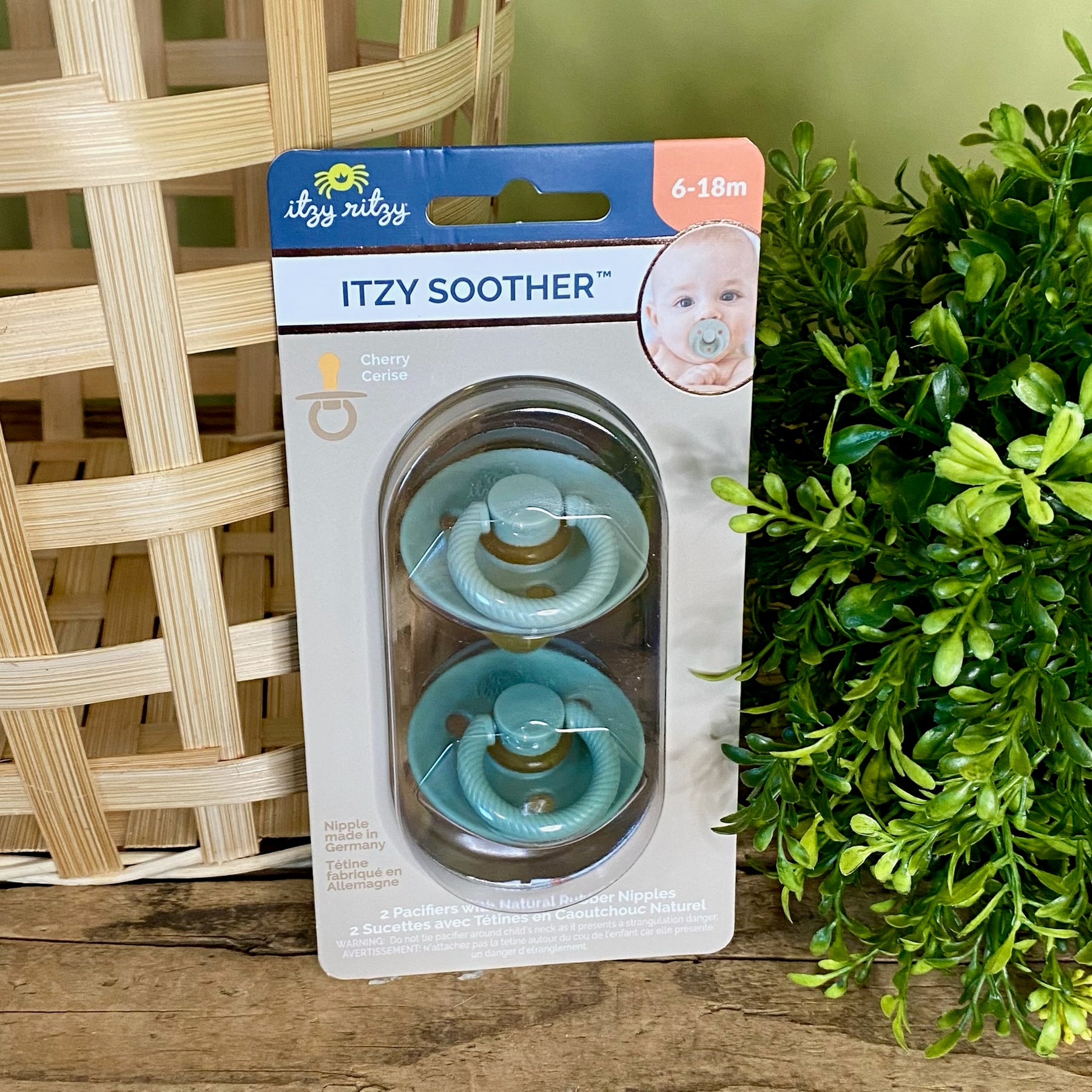 Discover the Itzy Soother™ Natural Rubber Pacifier, designed to mimic breastfeeding with its cherry-shaped nipple for maximum comfort and soothing. Each set includes two pacifiers in complementary colors, featuring a handy cable handle for easy grip. Made from natural rubber, these pacifiers are BPA-free and meet ASTM safety standards, ensuring a safe and calming experience for your little one.