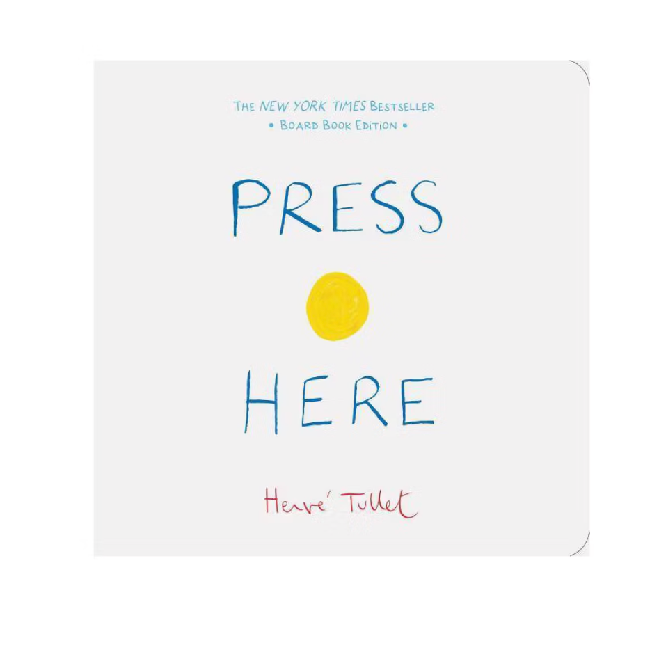 A hands-on reading experience like no other, Press Here is a wildly imaginative, interactive picture book that invites children to become part of the story. Featuring simple colored dots and playful instructions, readers are encouraged to press, rub, clap, tilt, and shake the book—watching the dots appear to change, multiply, and move across the pages.
