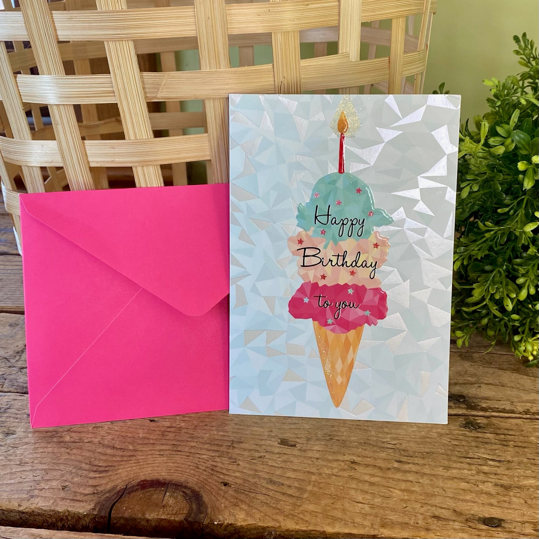 Celebrate a sweet birthday with the charming Ice Cream Birthday Card, featuring a colorful ice cream cone topped with a candle. This delightful card is accented with glitter, foil, and embossing for an extra special touch.