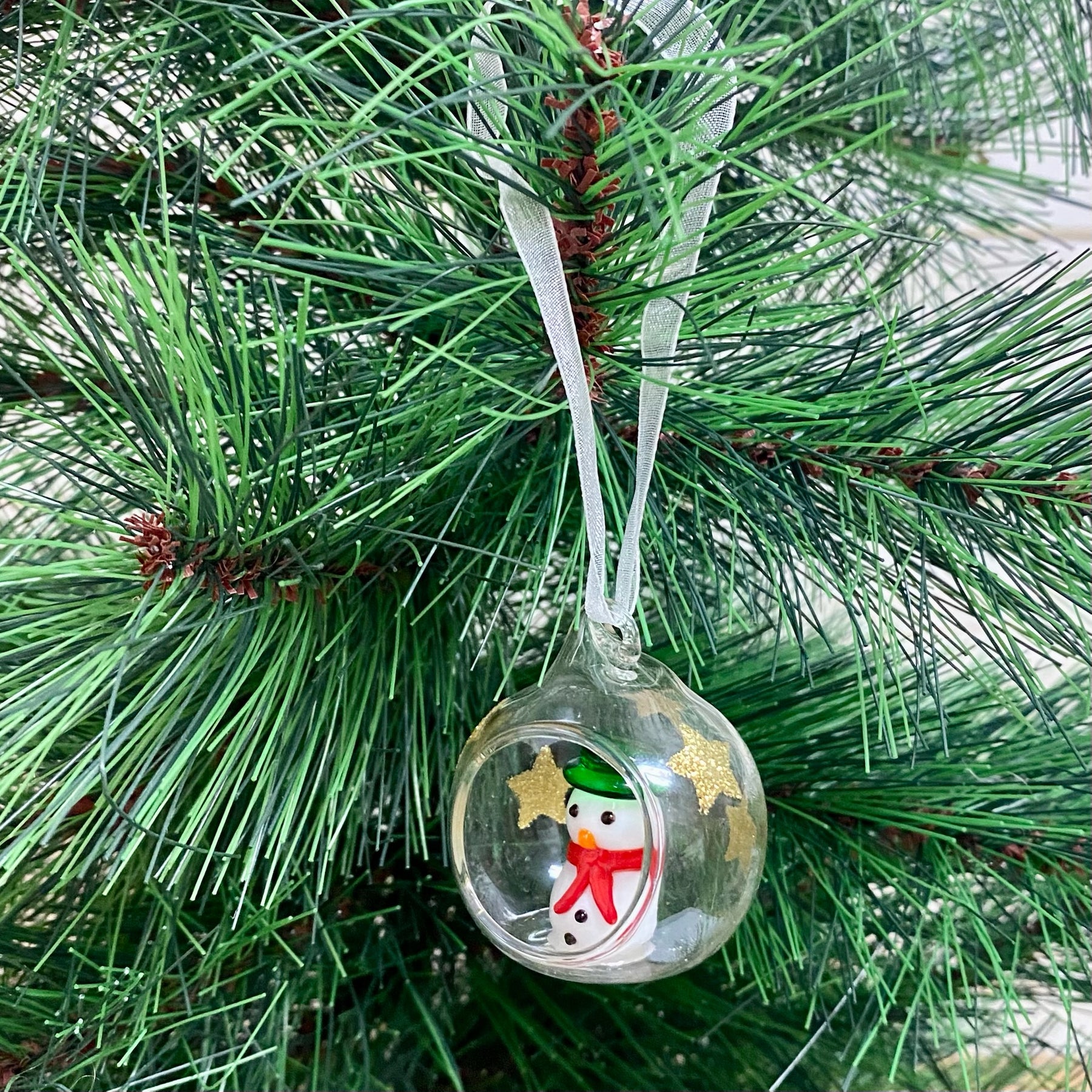 Add classic holiday charm to your Christmas tree with these Glass Globe Ornaments. Available in snowman, Santa, or Christmas tree designs, each delicate ornament is crafted from glass and features a ribbon hanger for easy display. Perfect for gifting or enhancing your festive décor.
