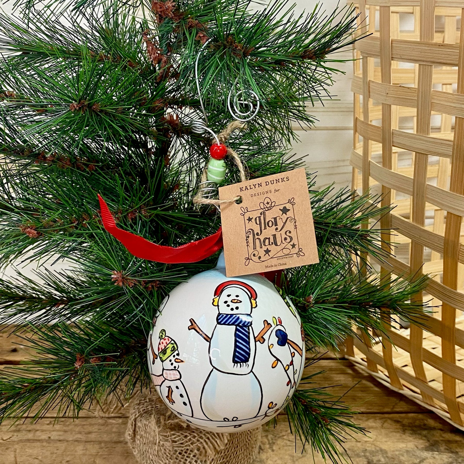 Celebrate the joy and magic of the holiday season with the Most Wonderful Time Snowmen Ornament. Featuring two cheerful snowmen dressed in festive scarves and hats, this hand-painted ceramic ornament brings warmth, happiness, and timeless charm to your holiday decor. Perfect for your Christmas tree, mantel, or as a thoughtful gift, it creates lasting memories for years to come.