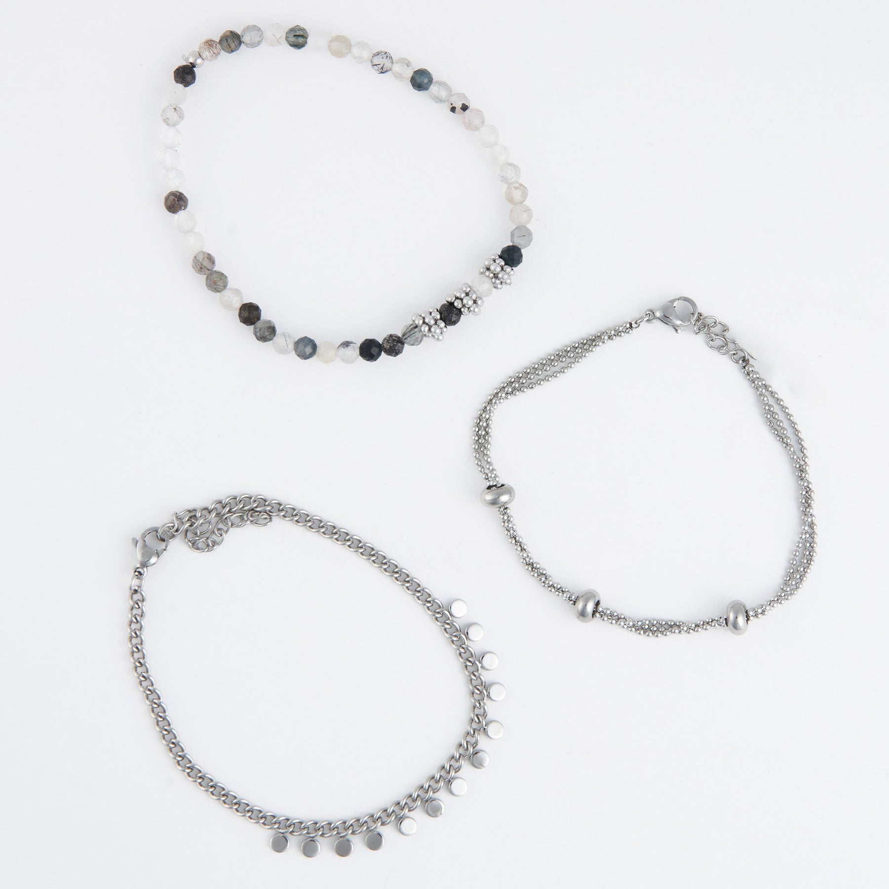 3-piece bracelet set with mixed closures (lobster clasps and stretch)