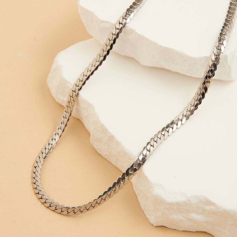 Elevate your layering with the Narelle Waterproof Herringbone Chain Necklace, a bold statement piece available in 18K gold-plated and stainless steel silver finishes. Waterproof, tarnish-resistant, and hypoallergenic, this 16" necklace with a 3" extender offers a secure lobster clasp and customizable fit. Its vintage-inspired herringbone design adds modern glamour, perfect for both casual and dressy looks. Wear it solo or layered for timeless style that lasts season after season.