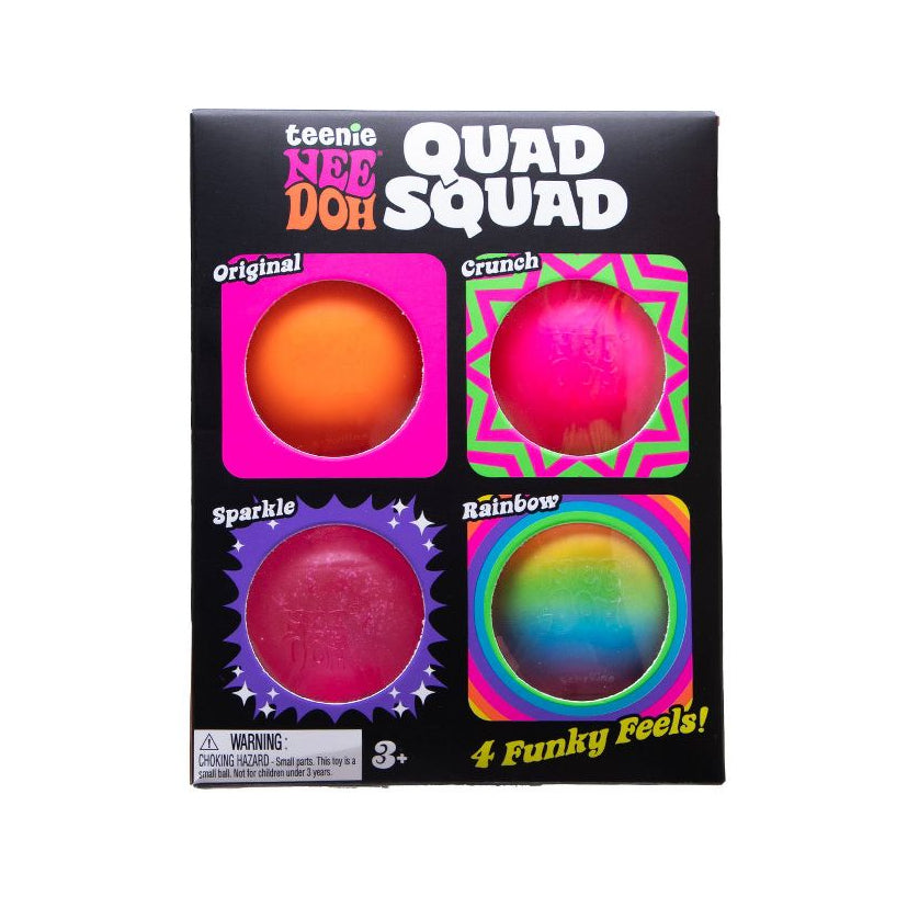 Quadruple the fun with the Nee Doh Teenie Quad Squad 4-Pack. This set includes four mini squishy fidget toys filled with Nee Doh’s signature dough-like compound, providing a soft, slow-rise squeeze that’s perfect for sensory play. Compact and colorful, these teenie-sized fidgets are ideal for stress relief, focus, and on-the-go fun.