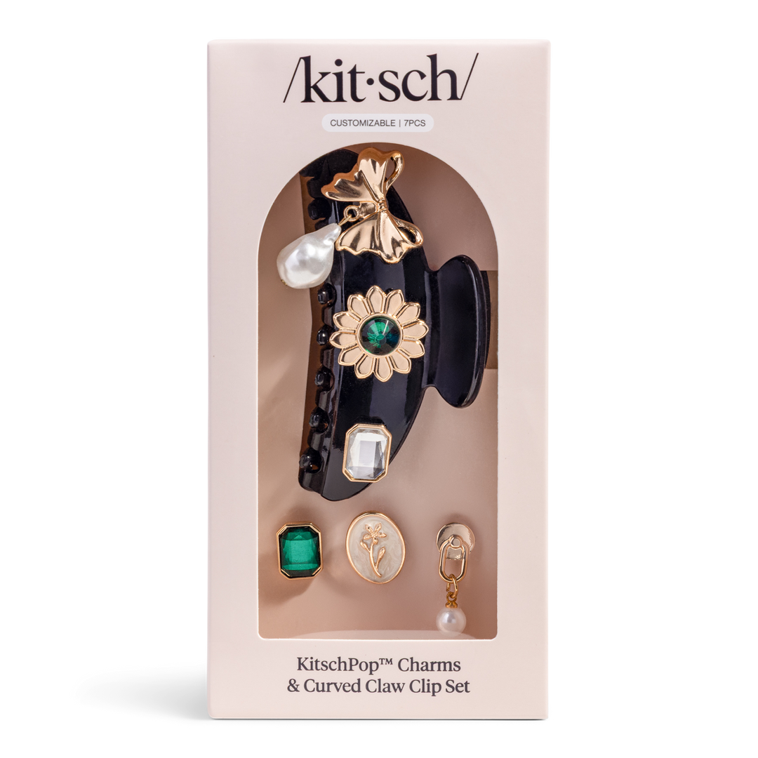 Personalize your everyday hairstyle with the KitschPop™ Curved Claw Clip & Charm Set by Kitsch. This 7-piece set features a chic, medium curved claw clip made from recycled materials, paired with playful, vintage-inspired charms you can mix, match, and swap in seconds. Designed to be gentle on hair while providing a secure hold, it’s perfect for effortless daily styling with a fun twist.