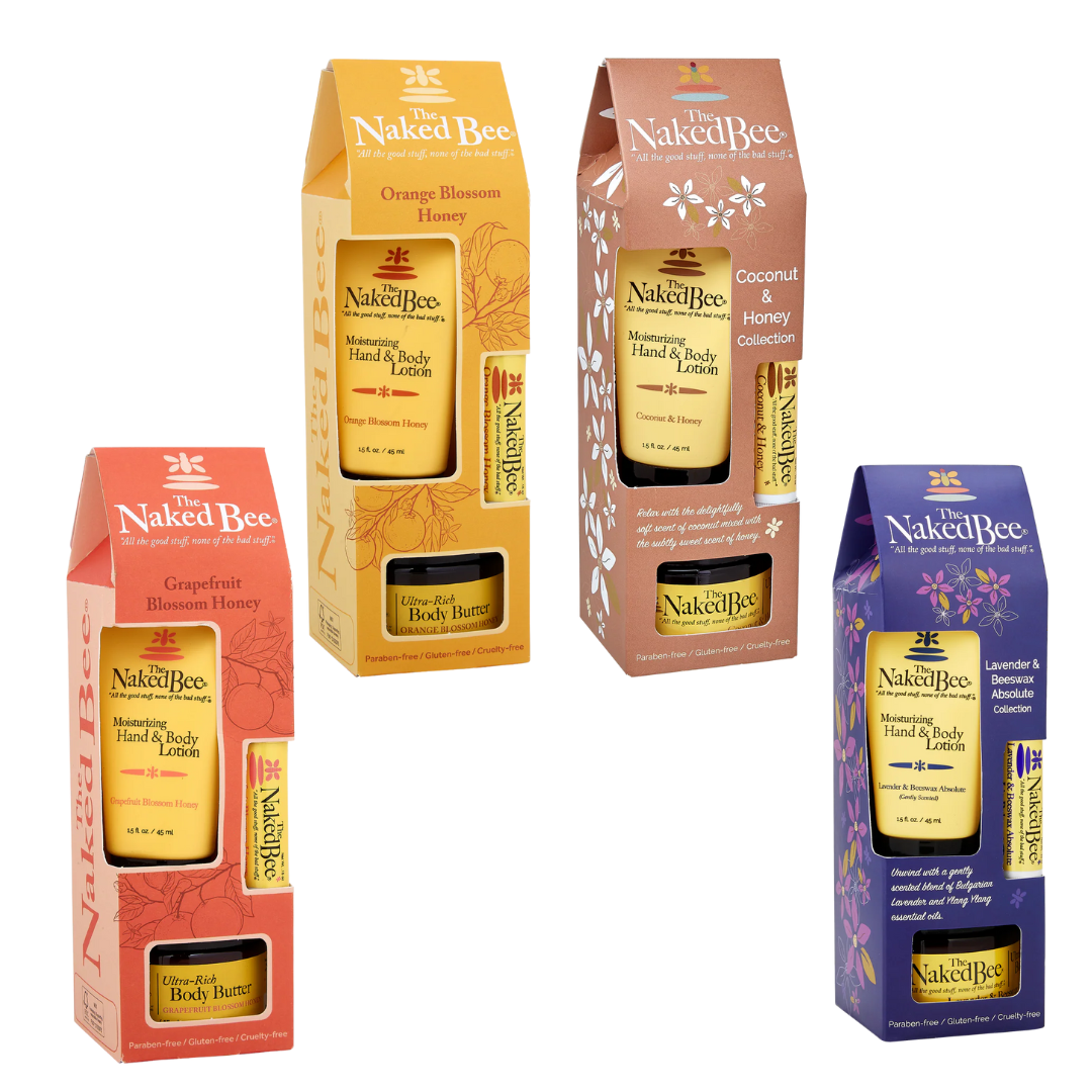 Pamper your skin with The Naked Bee Gift Set, featuring best-selling body care favorites made from naturally inspired, skin-loving ingredients. This curated set includes a 1.5 oz Hand & Body Lotion, a 3.0 oz Ultra Rich Body Butter, and a nourishing Lip Balm—perfect for gifting or everyday self-care.