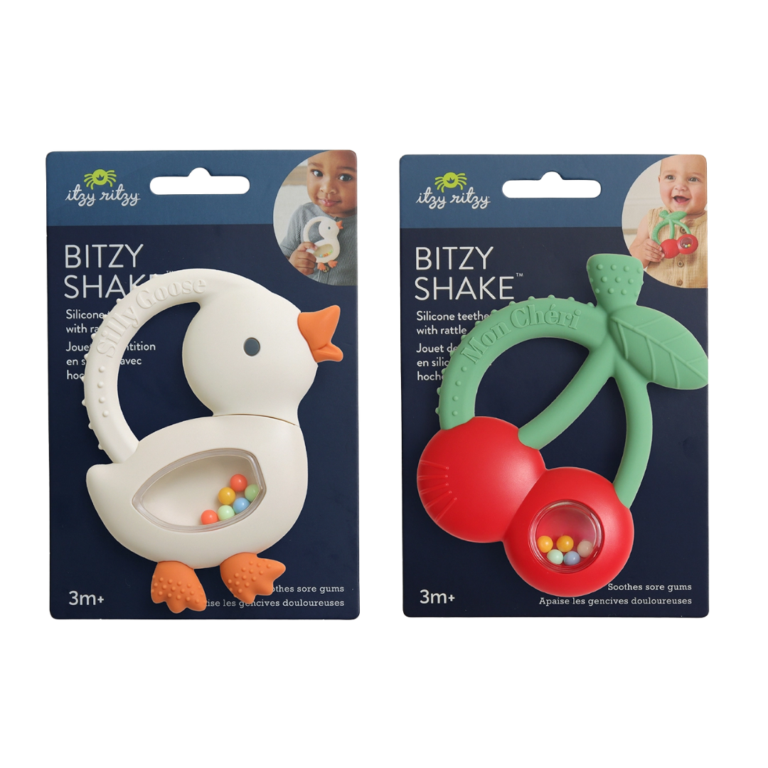 The Bitzy Shake Rattle is a fun and engaging sensory toy designed to soothe and entertain little ones. Featuring soft, flexible silicone and colorful moving beads, this rattle provides a gentle, satisfying sound that encourages early cause-and-effect learning. The textured surface is easy for small hands to grasp and helps soothe and relieve during playtime. Perfect for curious minds and busy hands, this playful rattle offers both comfort and stimulation in one adorable design.