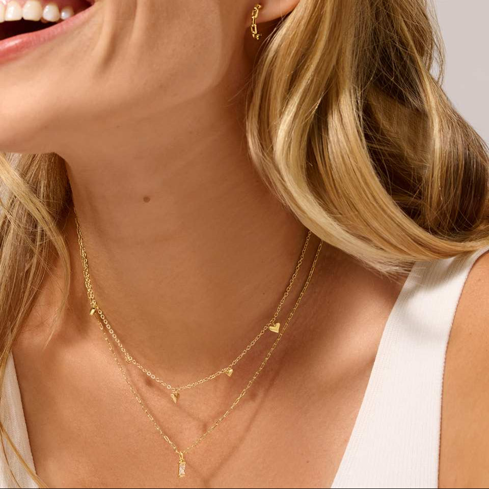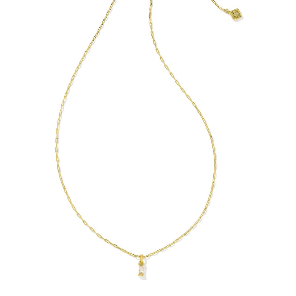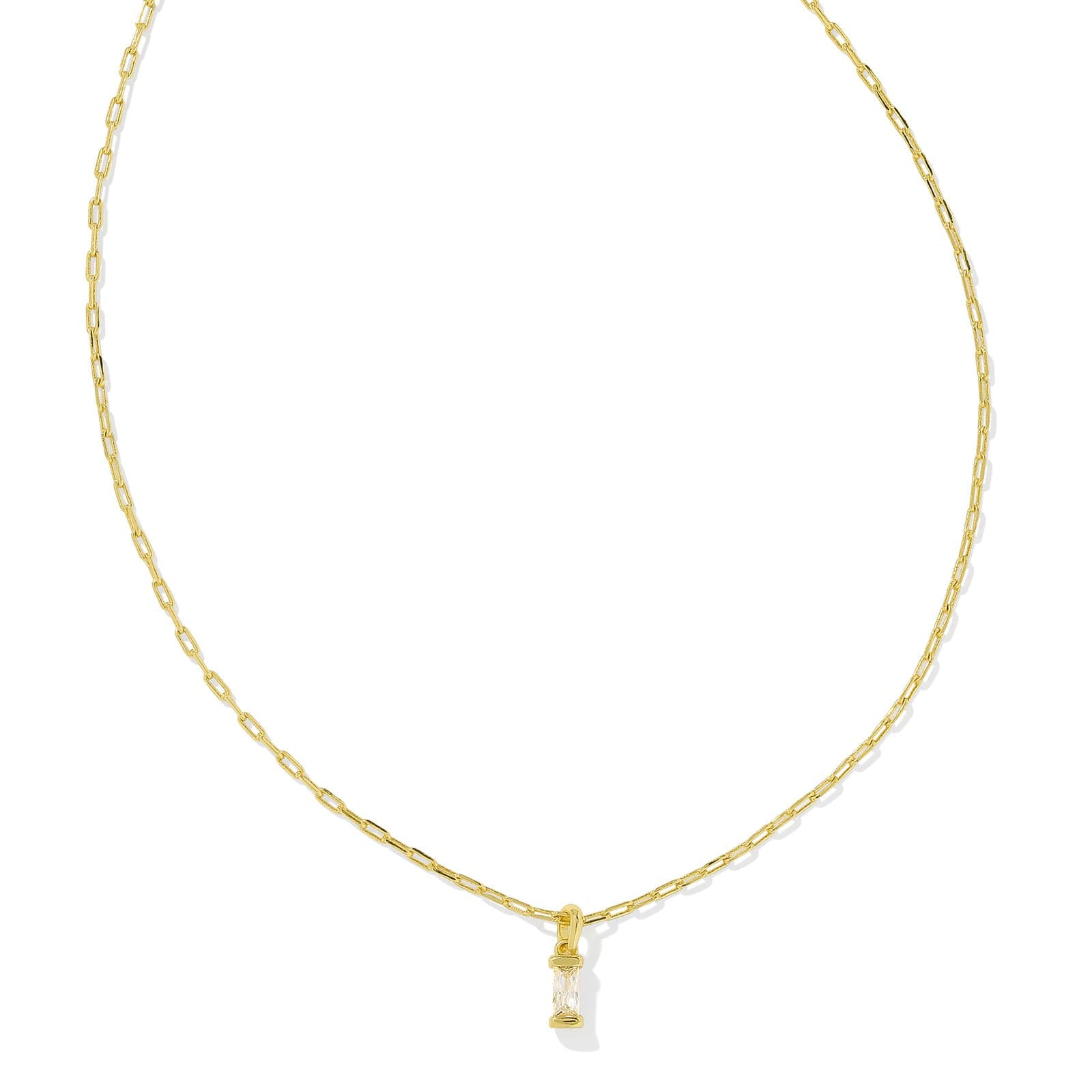 Timeless elegance meets subtle sparkle in the Phoebe Gold Short Pendant Necklace by Kendra Scott. Featuring a single baguette white CZ crystal set on a delicate 14k yellow gold or rhodium-over-brass chain, this refined piece adds a touch of sophistication to any outfit or occasion.