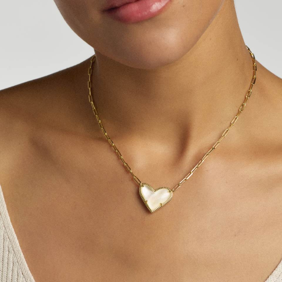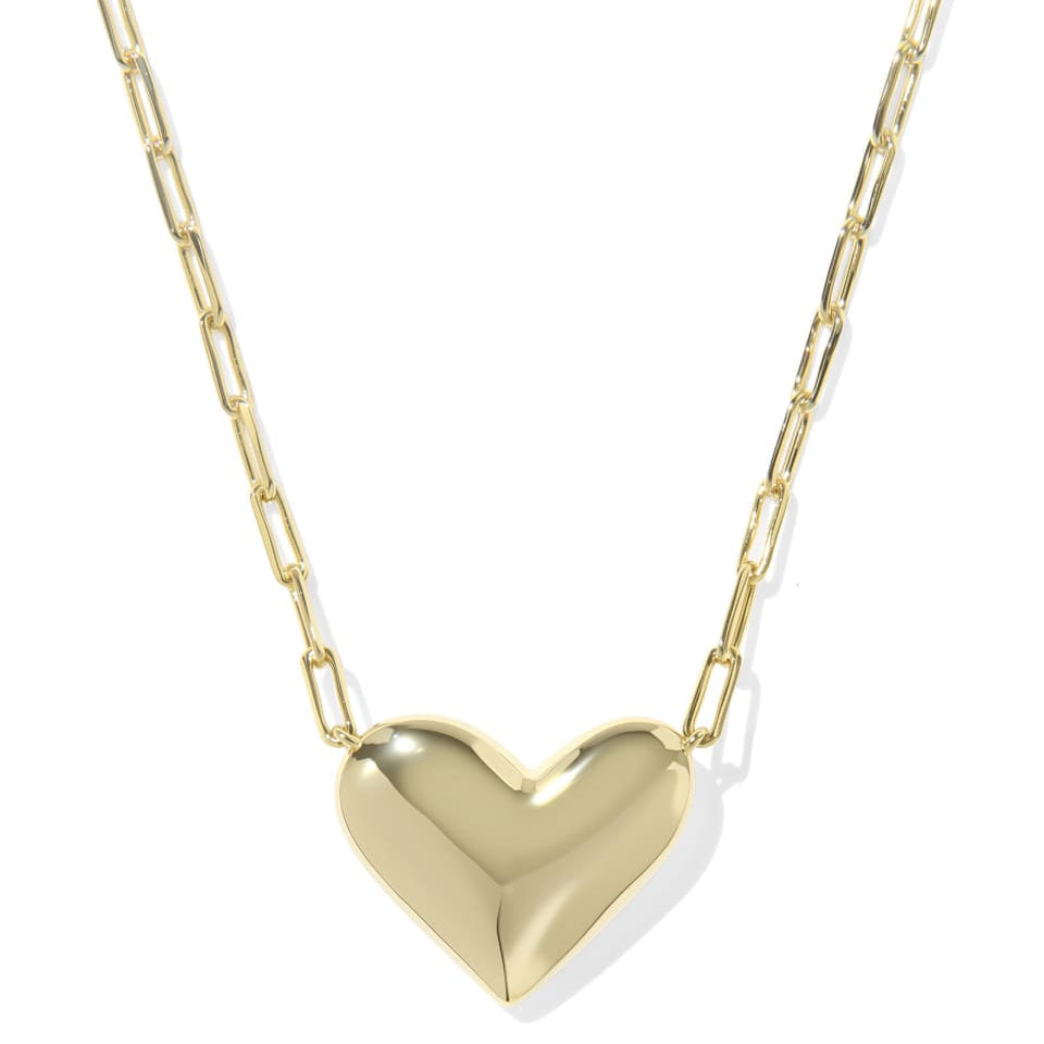 Make a bold statement with the Ari Heart Statement Short Pendant Necklace, a maximalist take on the timeless organic heart shape. Set on a chic paperclip chain, this necklace adds a touch of romantic elegance and sweetness to any outfit.