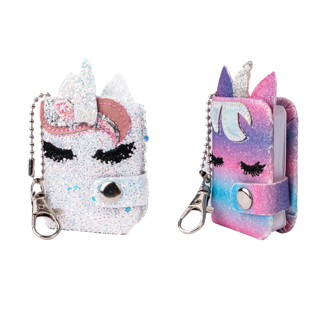 Keep your thoughts, dreams, and doodles close with these Mini Key Chain Journals. Featuring glittery covers and a convenient keychain attachment, these journals are perfect for on-the-go creativity. Compact and portable, they easily clip to backpacks, purses, or keys, so you can jot down ideas anytime inspiration strikes.