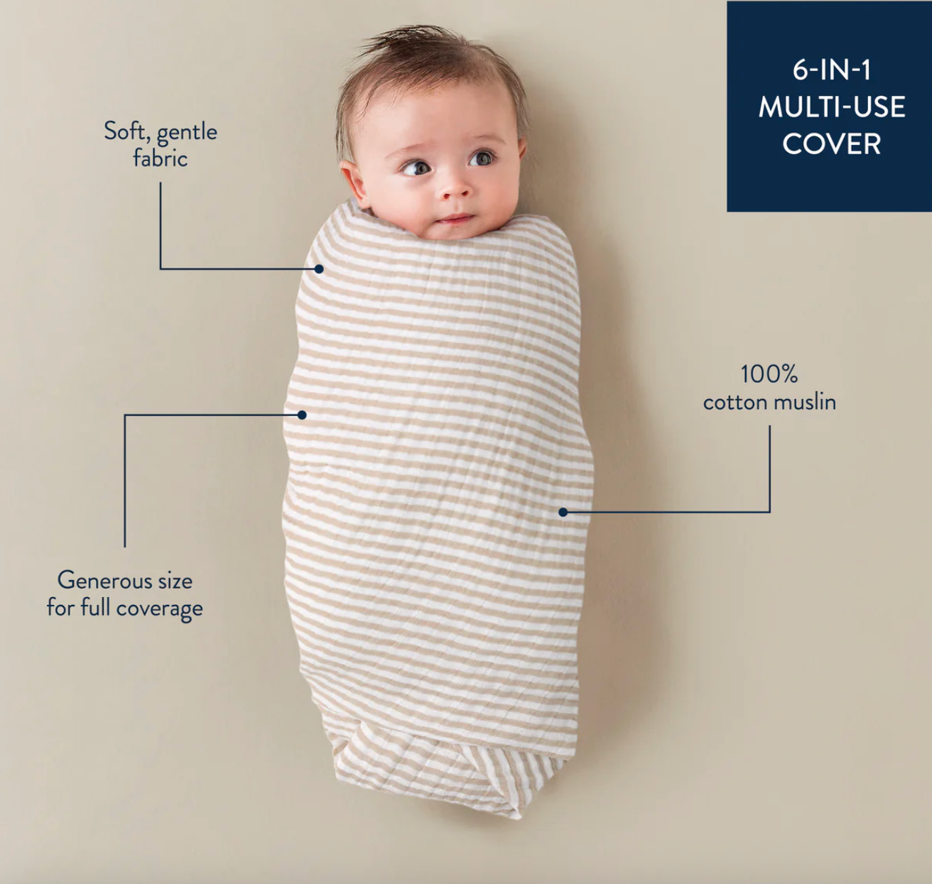 Multi-functional design for swaddling, nursing, burping, tummy time, and stroller or changing table cover