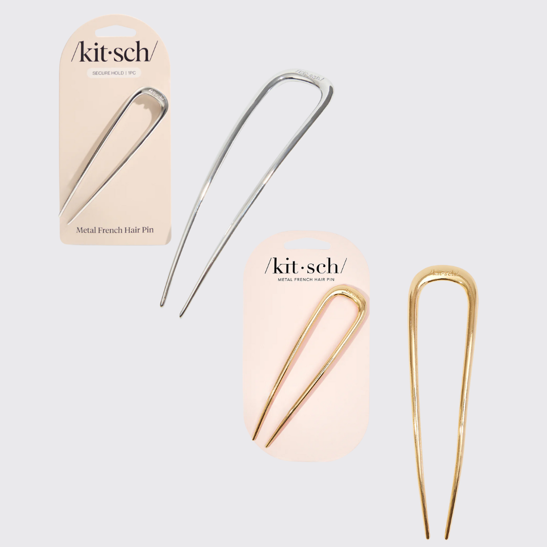 Effortlessly twist your hair back with the sleek and stylish Metal French Hair Pin by Kitsch. Crafted from lightweight metal with a smooth finish, this hair pin glides through strands without snagging, making it easy to create elegant updos or simple swept-back styles. Its subtle silver sheen adds a touch of sophistication to any look.