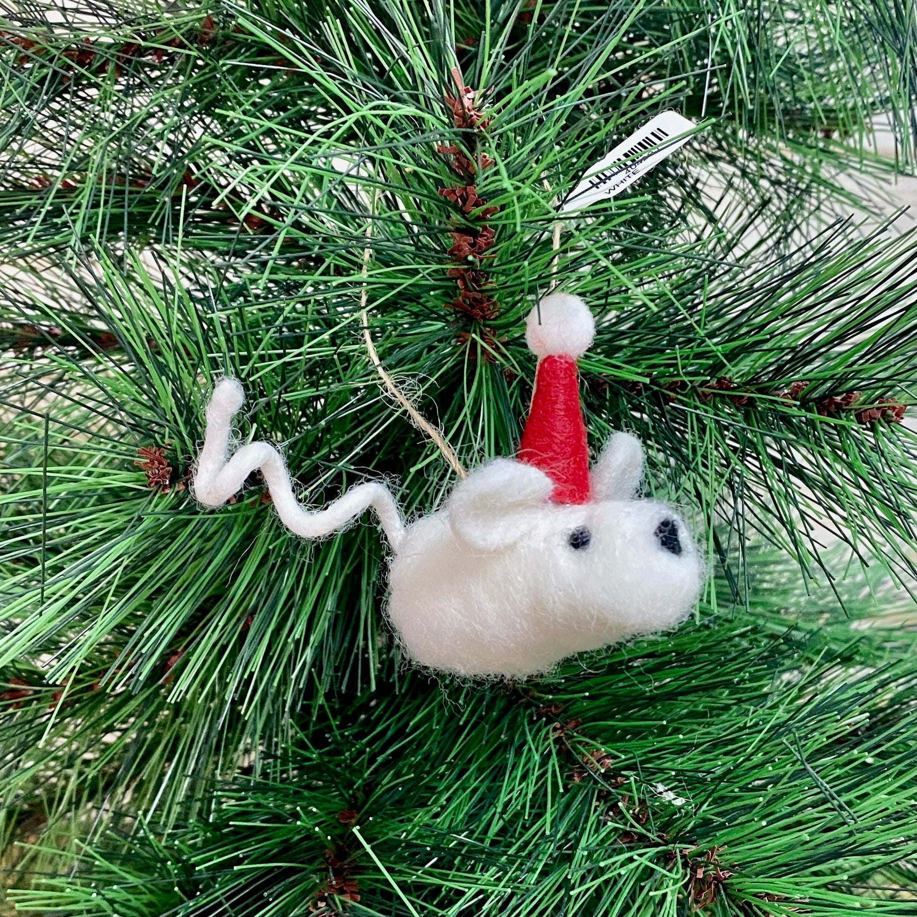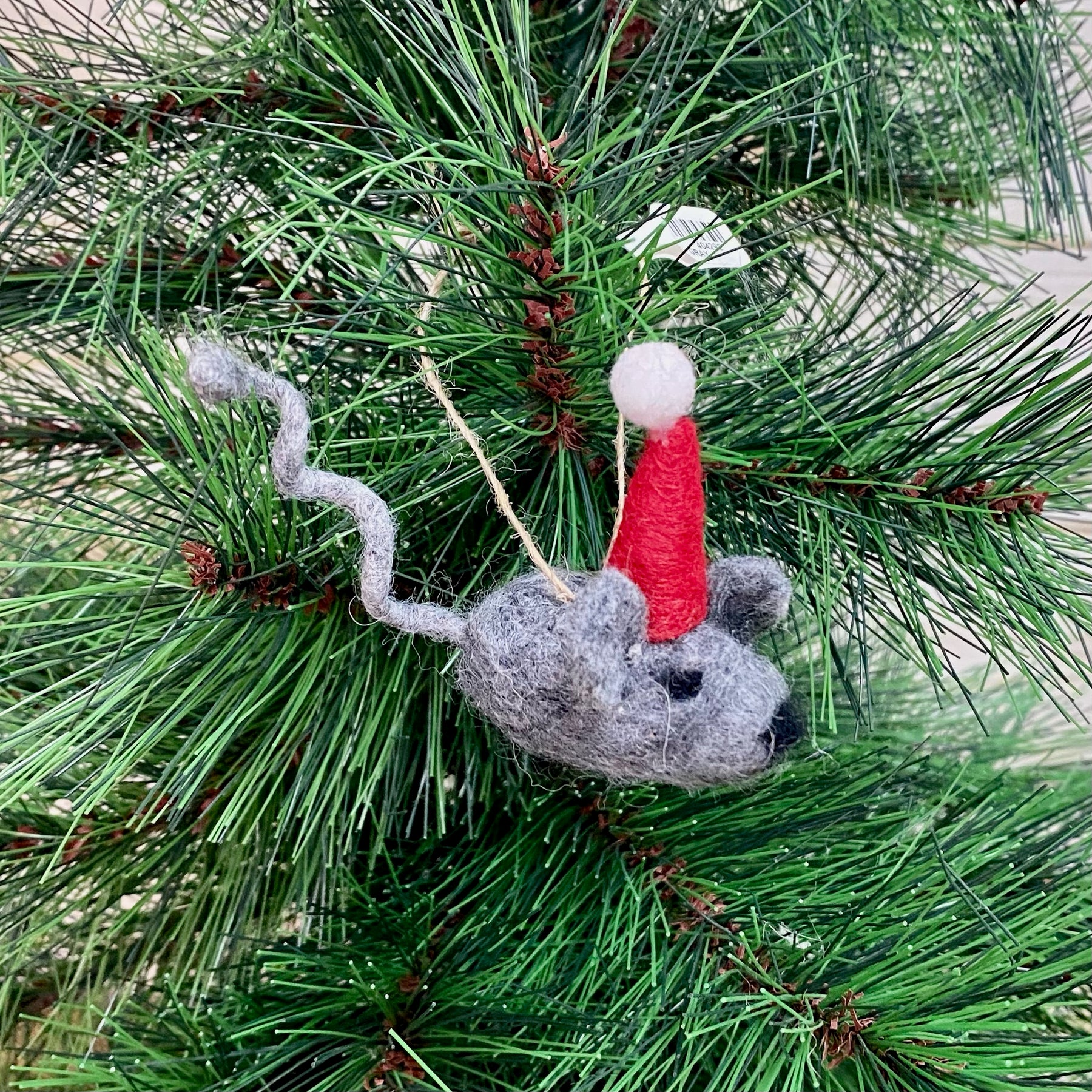 Add a touch of festive whimsy to your holiday décor with these Santa Hat Mouse Ornaments. Made from soft felt and featuring a twine hanger, each mouse wears a tiny Santa hat, making them a charming addition to any Christmas tree or ornament collection.