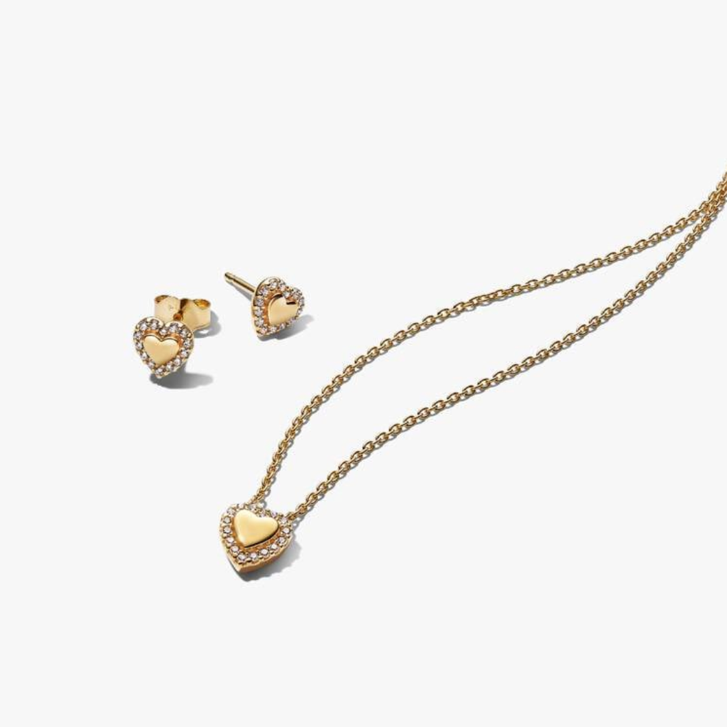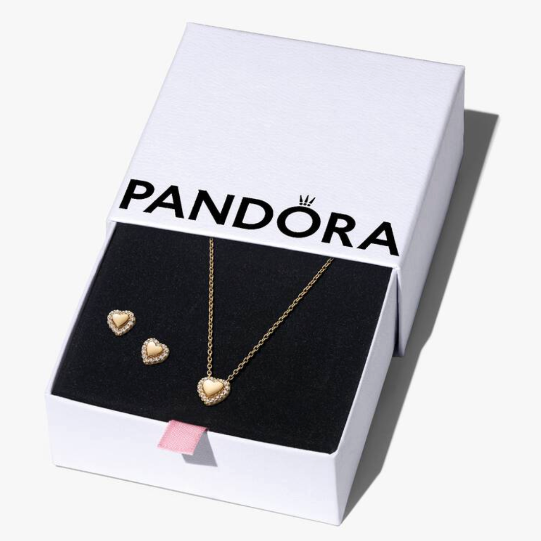Celebrate your milestones with the Gold Plated Halo Heart Pandora Gift Set, a meaningful and radiant keepsake.