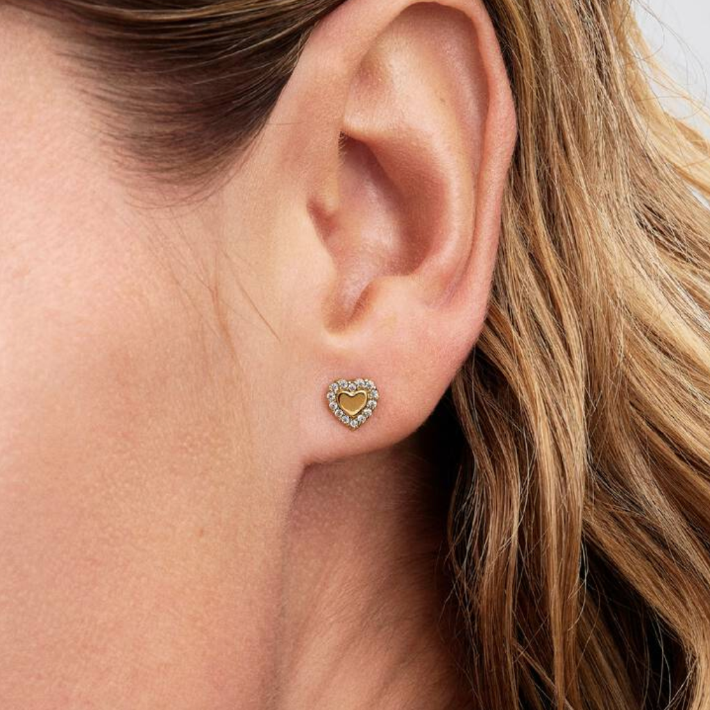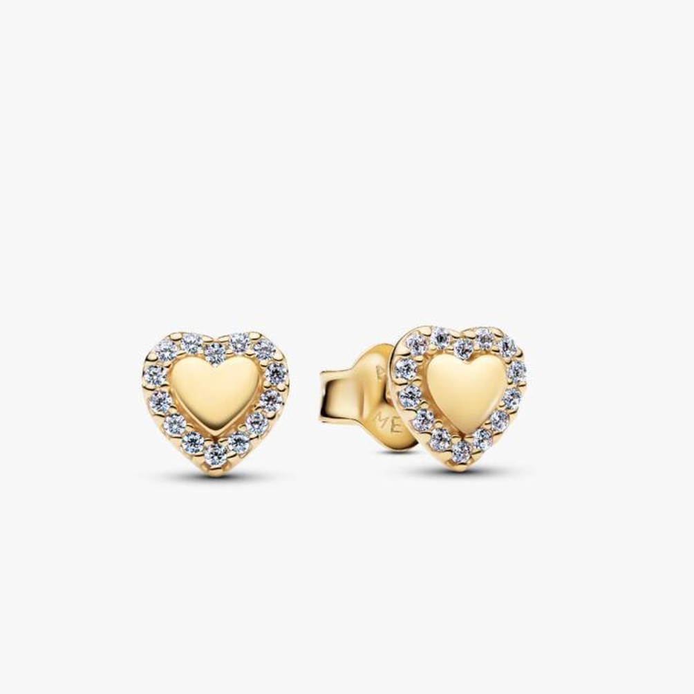 Gold Plated Halo Heart Pandora Stud Earrings