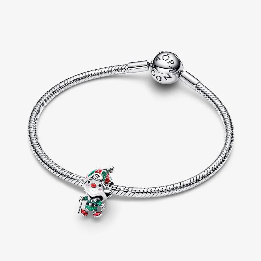Add playful holiday cheer to your bracelet with this sterling silver Moveable Elf Pandora charm. Featuring vibrant, glittery enamel and intricate details, the elf’s movable limbs bring festive magic to your collection.