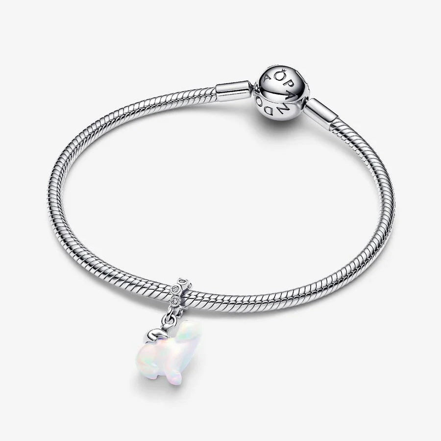 Celebrate love and connection with this sterling silver Polar Bear Mother & Cub dangle Pandora charm. Featuring a mother cradling her cub, adorned with aurora lab-grown opal resin and sparkling cubic zirconia, it’s a heartfelt symbol of affection.