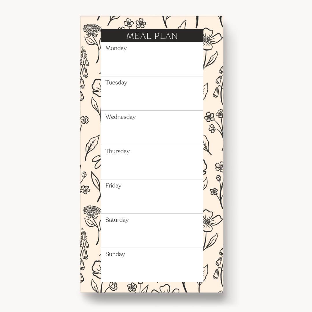 Meal Plan Notepad – Weekly Planning with Floral Flair