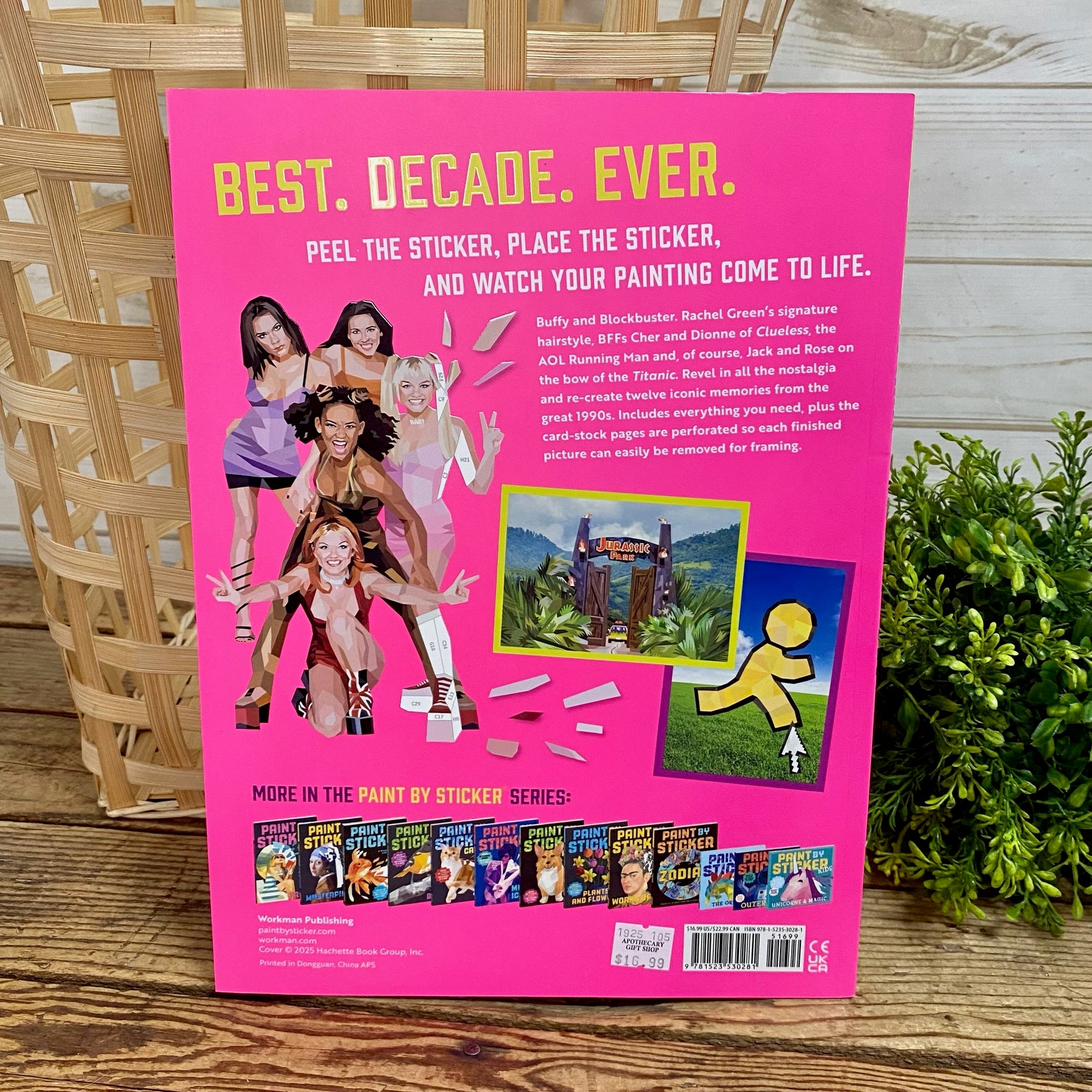 Celebrate all things ’90s with the Paint By Sticker 90’s Book! Relive iconic moments from the decade — from Blockbuster VHS tapes to Michael Jordan’s game-winning shot, Beanie Babies, AOL’s Running Man, Rachel Green’s hairstyle, and even the “flying” scene from Titanic. Each perforated card-stock page allows finished artwork to be removed easily for display or gifting.