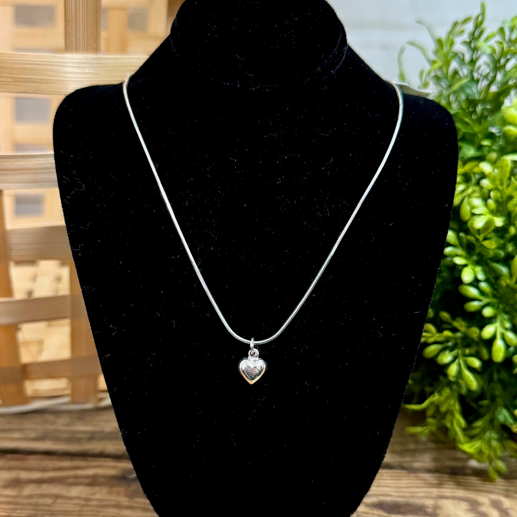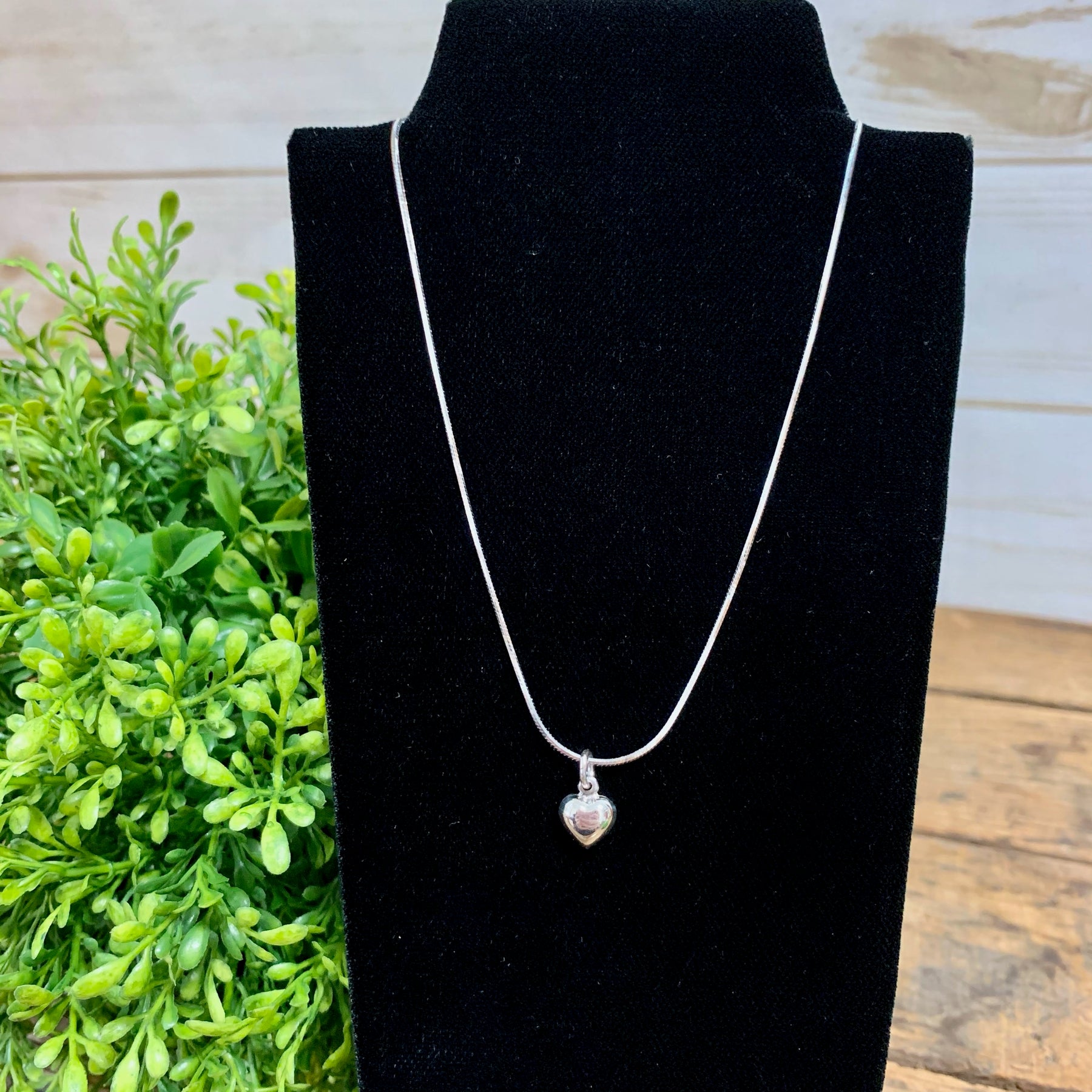 Sterling Silver small puffed heart pendant! This dainty design is simple and elegant, perfect for everyday wear! Pair it with a 16" or 18" chain for the perfect gift.