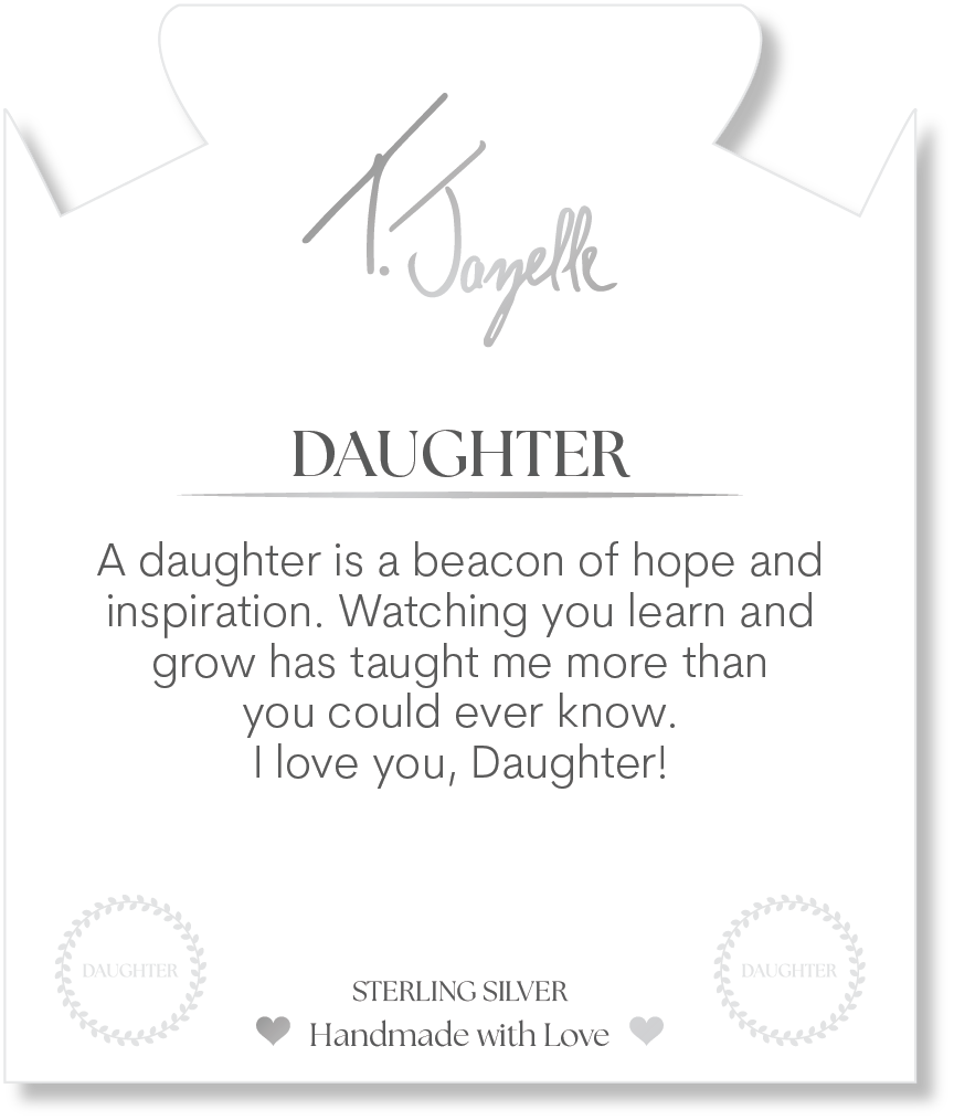 Celebrate the special bond with your daughter with the Endless Love Daughter T. Jazelle Bracelet. Featuring an 8 mm gemstone bead design and a sterling silver charm, this bracelet symbolizes love, inspiration, and pride. Handmade with care, it makes a meaningful gift for birthdays, milestones, or simply to remind your daughter how cherished she is.