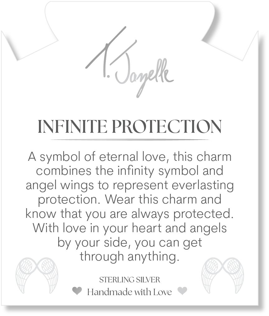 Carry a symbol of eternal love and protection with the Infinite Protection T. Jazelle Bracelet. Featuring an infinity symbol paired with angel wings, this sterling silver charm bracelet serves as a reminder that you are always watched over. Handmade in the USA, it combines meaningful design with elegant craftsmanship, making it a thoughtful gift or personal keepsake.