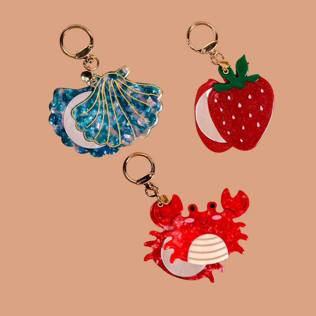 Add a playful and practical touch to your everyday carry with our Mini Mirror Bag Charms. Crafted from durable acrylic, each charm features two layers with a hidden mirror for quick touch-ups on the go. Lightweight yet sturdy, these charms clip easily to purses, backpacks, or totes, combining style and function in one fun accessory.