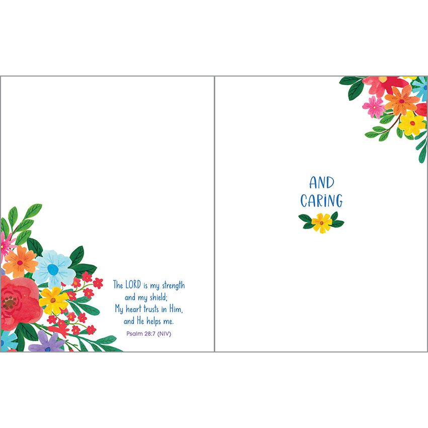The inside message reads Psalm 28:7 NIV, making it a comforting choice for sending encouragement, sympathy, or simply letting someone know they are in your prayers. Elegant gold foil embellishments add a subtle, uplifting shine, while the included envelope makes it ready to give or mail.