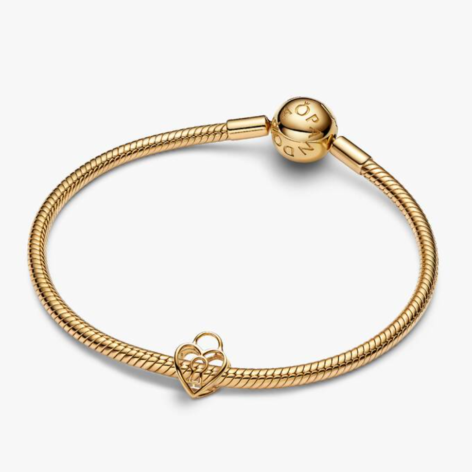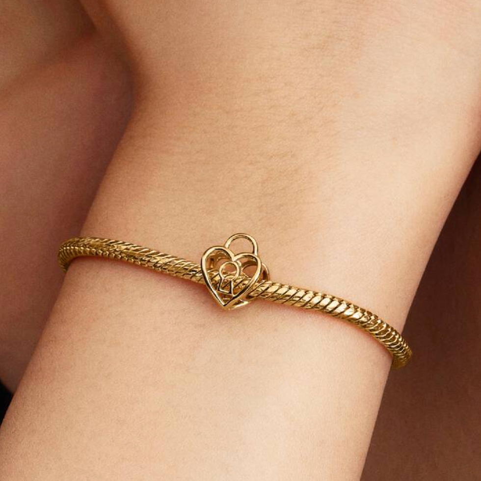 Lock in your love with this elegant 14k gold-plated Pandora charm, featuring a delicate openwork heart design centered by a symbolic padlock. Representing trust, commitment, and the strength of lasting bonds, this charm is a beautiful addition to your Pandora Moments collection.