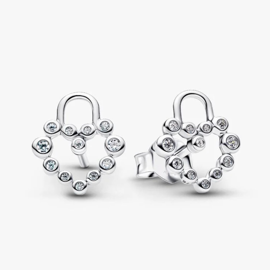 Unlock the beauty of love with these sterling silver earrings, featuring sparkling cubic zirconia stones arranged in a heart-shaped padlock design. Hand-finished by Pandora artisans, these earrings combine symbolism and shimmer for a truly meaningful accessory.