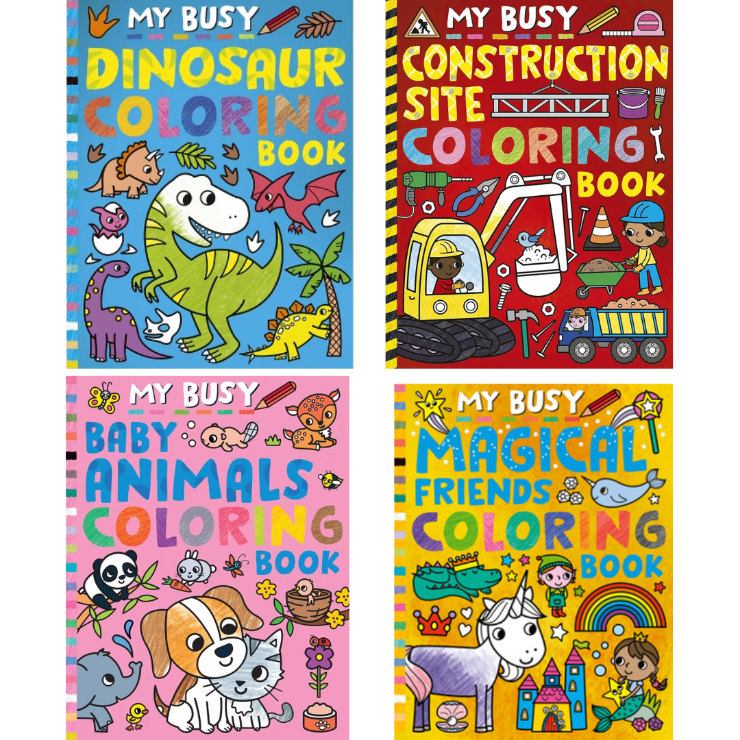 Dinosaur: This busy coloring book is perfect for young fans of dinosaurs. Little ones will find all kinds of exciting prehistoric friends, from speedy Velociraptors to soaring Pterodactyls and charging Stegosauruses. With a shiny foil cover and bold outlines to help children improve their coloring skills, this book will provide hours of fun for young artists with big imaginations!