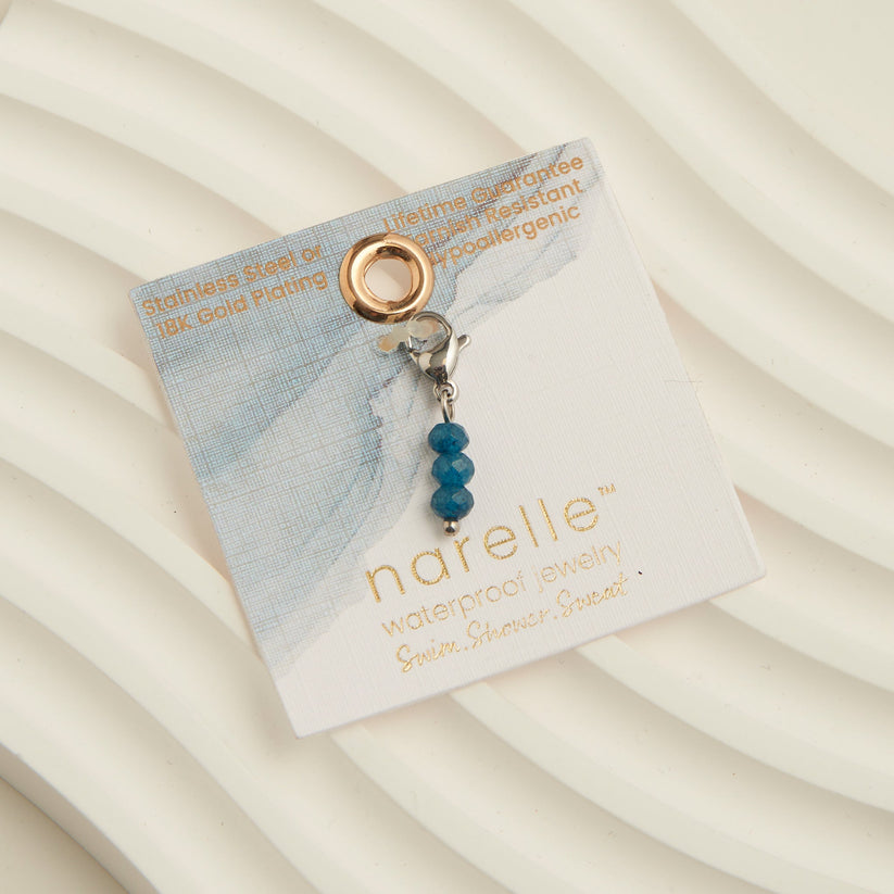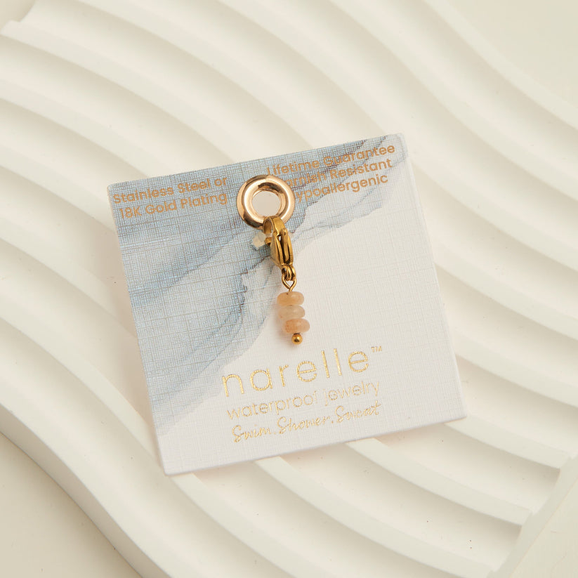 Adorable and durable, the Narelle Waterproof Drop Bead Charm features an 18k gold plated or stainless steel plated clasp with a lovely stack of three earth-tone beads. Easily attach it to your favorite Narelle Waterproof bracelet or necklace to create a look as unique as you! Hypoallergenic, tarnish-resistant, and backed by a lifetime color guarantee.