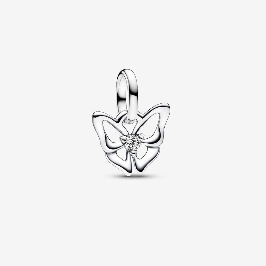 Embrace your independent spirit with this sterling silver Mini Dangle Butterfly Pandora charm. Featuring openwork wings and a sparkling round brilliant-cut stone at the center, it’s a delicate symbol of freedom and self-expression.