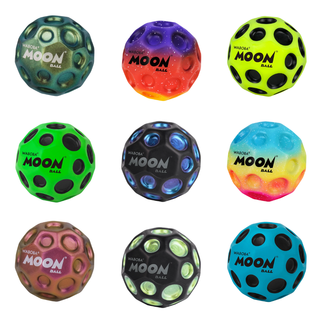 Take playtime to new heights with the Waboba Moon Ball. Featuring crater-like textures for easy grip and a unique “pop” sound on impact, this ball delivers an interstellar experience every time it bounces. Bounce higher, play longer, and explore the fun of gravity-defying action!